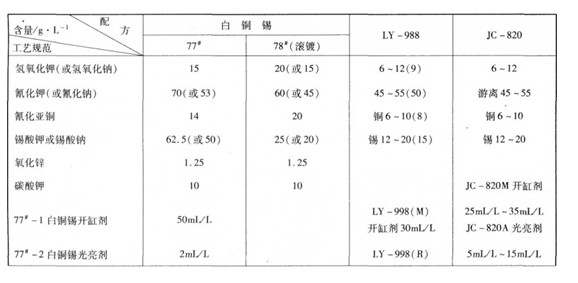 表4-1-6電鍍白銅錫工藝規(guī)范